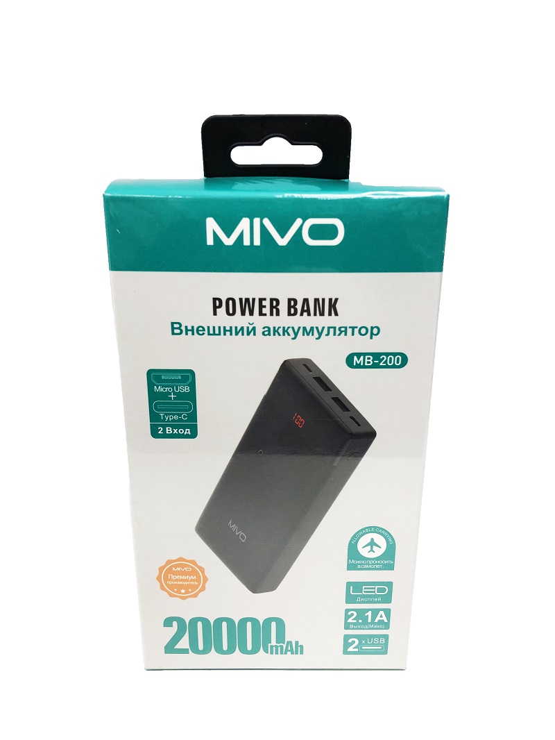 Внешний аккумулятор 20000мАч Mivo MB-200
